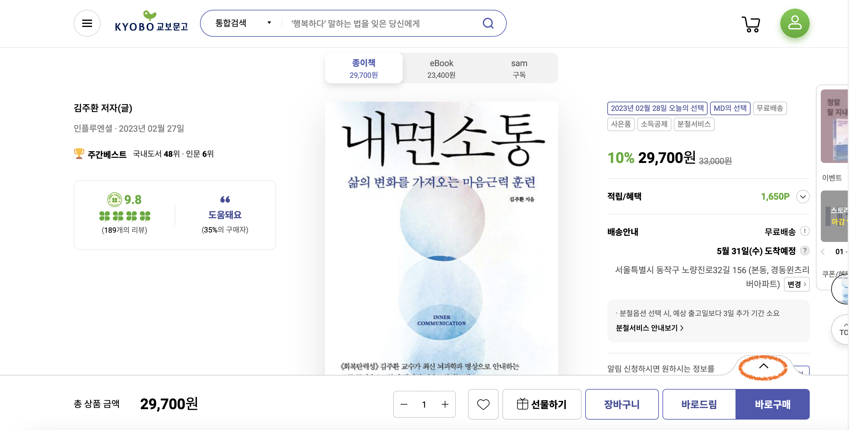 마침 교보문고에서 해당 도서가 분철서비스 제공이 가능한 상품이라는 소식을 접하고, PC로 주문을 해보려고 하는데 아무리 찾아도 모르겠는 거다. 나중에 가까스로 주문을 성공하고 알았지만, 스마트폰에서는 쉽게 찾을 수 있었다. 요즘 아무래도 모바일 버전으로 유입이 많다 보니 교보문고애서 PC버전에는 많이 세심하게 신경을 못쓴 느낌이다.