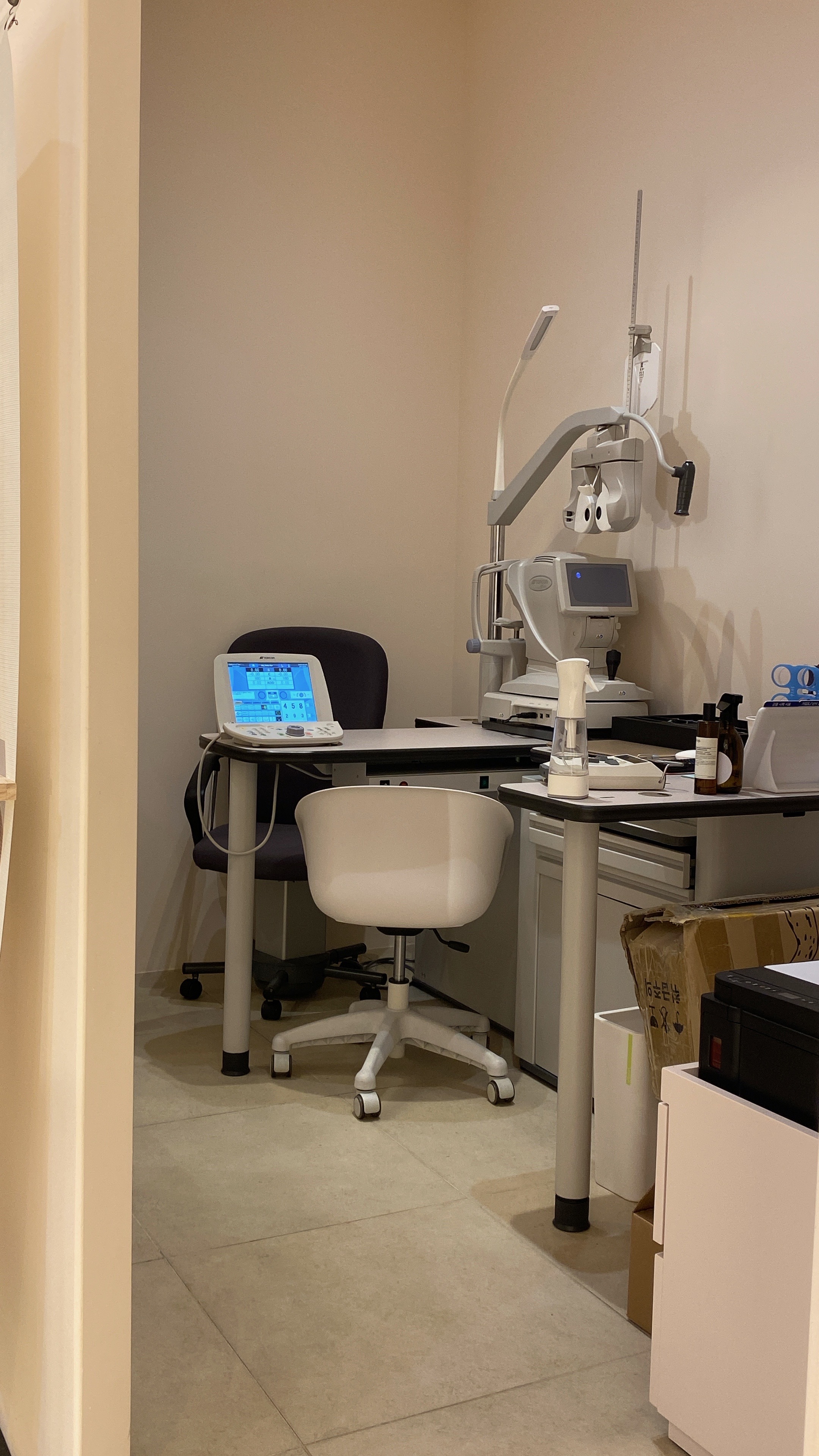 남편 시력검사가 끝나고 내 차례가 되었는데, 지금까지 받아본 시력 검사 중에 가장 꼼꼼한 검사였다. 뭔가 보는 게 약간 더 추가된 느낌? 잘 모르는 분야라 뭐라 설명을 해야 할지 모르겠다. 검사해 보니 안 그래도 꽤 심하던 오른쪽 난시가 더 심해졌고, 이번에 검사하면서 처음 알게 된 사실은 외관상으로 내 눈은 정상으로 보이지만, 사물을 볼 때 눈이 중간으로 약간 몰리는 경향이 있다고 말씀해 주셨다. 그래서 눈에 힘을 풀면 초점이 안 맞았던 건지 안경을 써도 불편했던 이유를 조금은 찾은 것 같다.